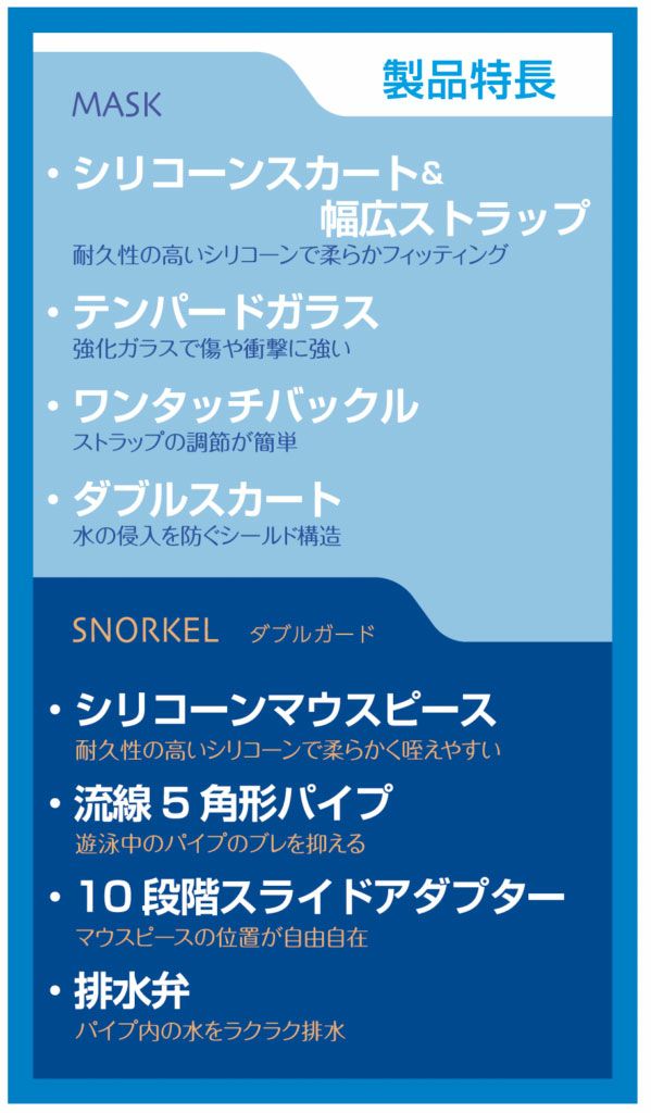 他の画像を見る フレームサイドの広がりが広視界と明るさを確保。ワイドビューマスク&スノーケルセット 男性向けAQA メビウスライト&サミーVライトII 2点セット メンズ KZ-9071N メーカー希望小売価格 ¥ 5,060 当店特別価格 ¥ 3,448 税込 詳細を見る お気に入りに追加