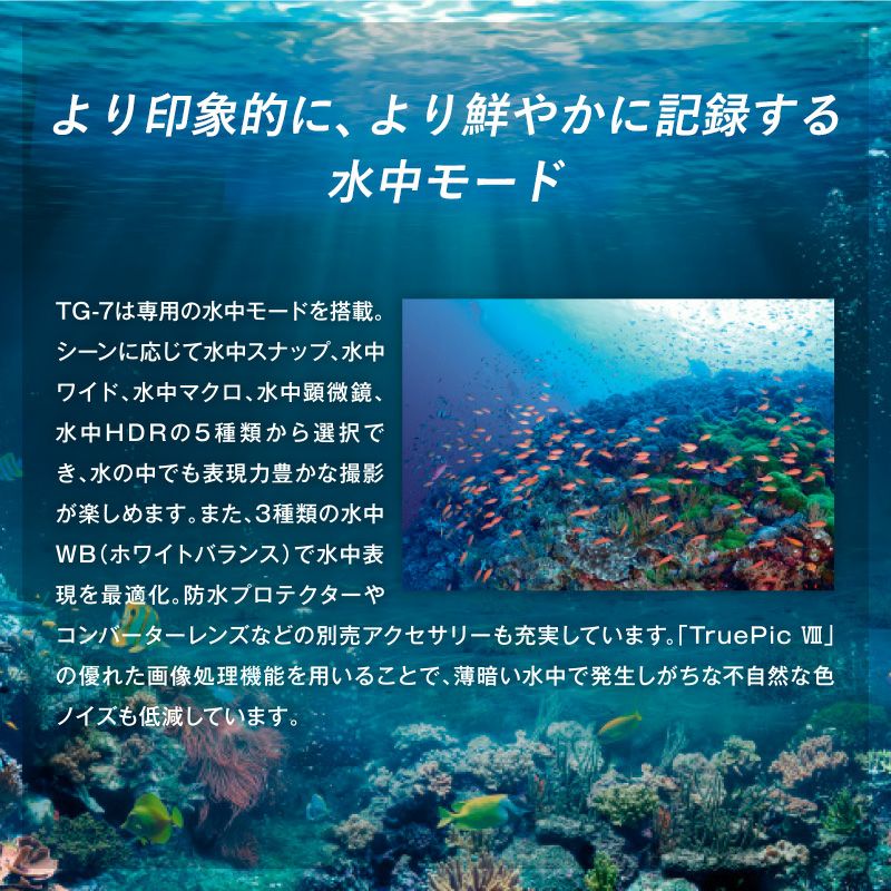 他の画像を見る 防水15m&多彩な拡張機能で水中撮影から超マクロまで。タフに使えるコンパクトデジタルカメラ Tough TG7 OM SYSTEM 防水カメラ 水中カメラ コンパクトデジカメ 送料無料 メーカー希望小売価格 オープン価格 当店特別価格 ¥ 82,500 税込 防水15m&多彩な拡張機能でタフに使えるTG7 詳細を見る お気に入りに追加