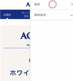 右からメニューが出てくるので、「設定ボタン」をタップ。