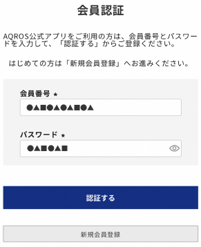 会員番号とパスワードが自動で入力されているので、変更せずに認証するをタップ。